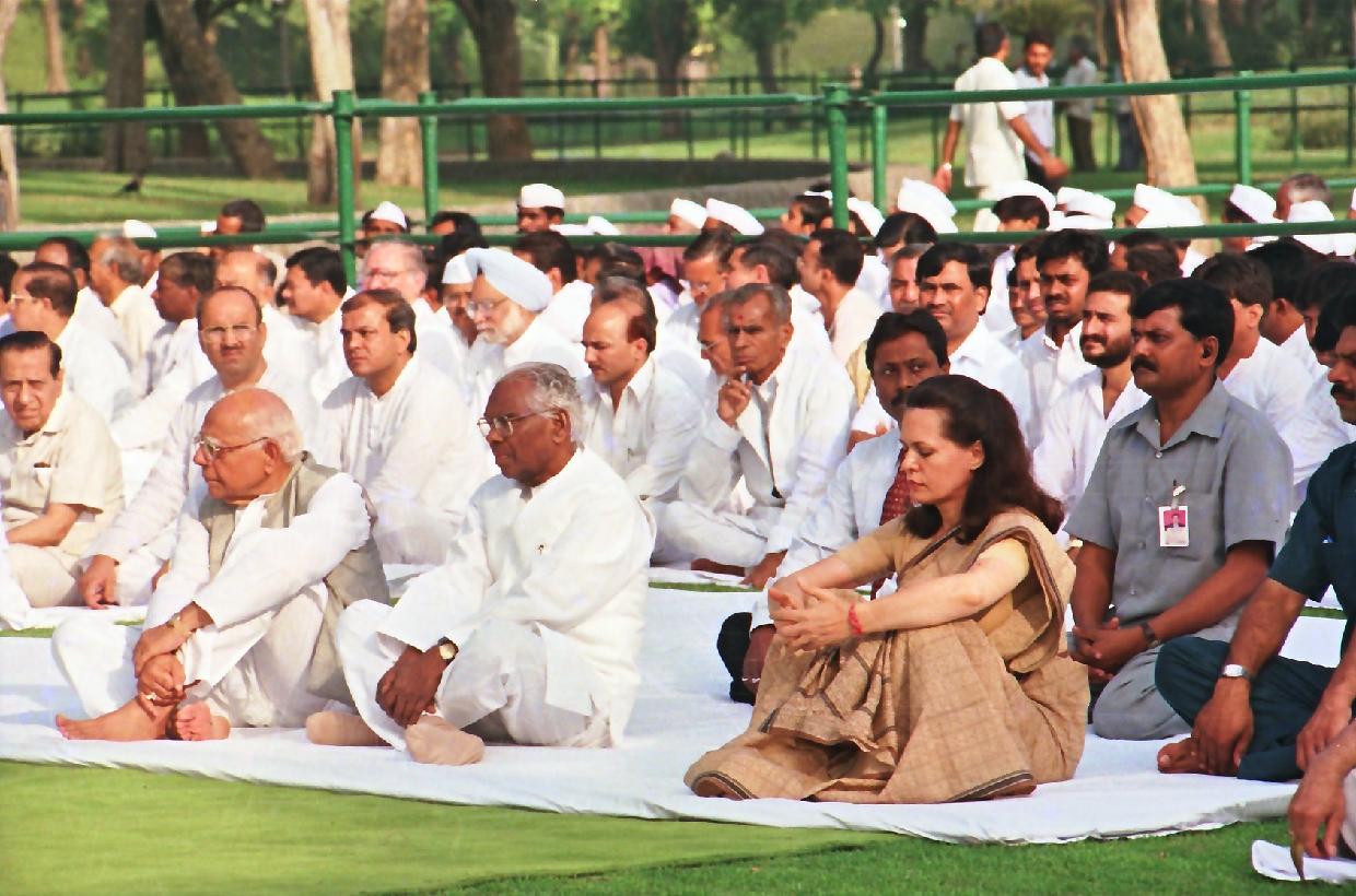 The President of India, Shri K R Narayanan paying homage at the Samadhi of the Former Prime Minister of India, Late Shri Rajiv Gandhi on the occasion of his Death Anniversary at Vir Bhumi in New Delhi on May 21, 1998