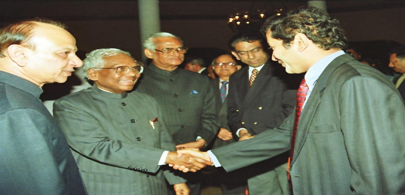 The President of India, Shri K R Narayanan meeting with the Special Representative of UNICEF in India, Mr Kul C Gautam and other to presenting the UNICEF Report on the State of World's Children (1998) at Rashtrapati Bhavan in New Delhi on Dec 17, 1997