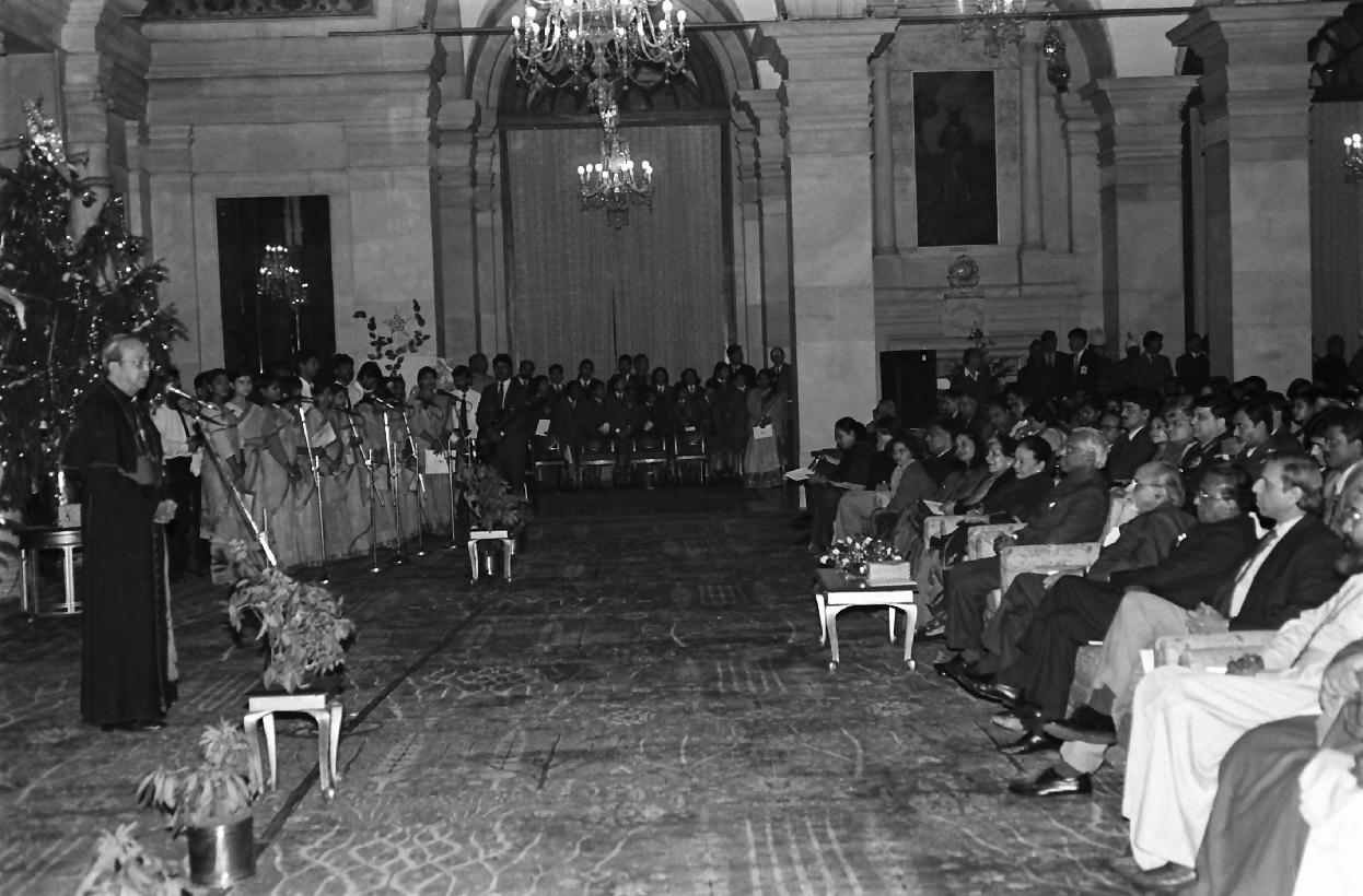 The President of India, Shri K R Narayanan meeting with the Christmas Carols at the Ashok Hall of Rashtrapati Bhavan in New Delhi on Dec 23, 1997