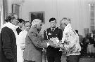 The President of India, Shri K R Narayanan presenting the Awards to Hindi Scholars Sponsored by the Kendriya Hindi Sansthan Agra at the Yellow Drawing Room of Rashtrapati Bhavan in New Delhi on Dec 26, 1997