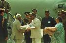 The President of India, Shri K R Narayanan being welcomed by the Governor of Andaman and Nicobar, Shri Ishwari Prasad Gupta at Port Blair in Andaman and Nicobar on Dec 27, 1997