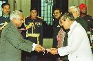 The President of India, Shri K R Narayanan presenting the National Awards in the Fields of Welfare of People with Disabilities at Vigyan Bhavan in New Delhi on Dec 03, 1997