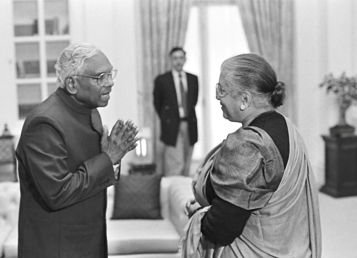 The President of India, Shri K R Narayanan meeting with Mr and Mrs Stephen J Solarz at Rashtrapati Bhavan in New Delhi on Dec 16, 1997