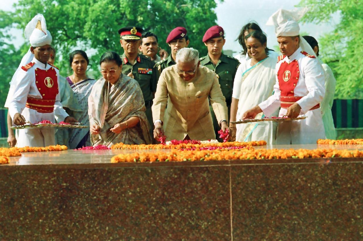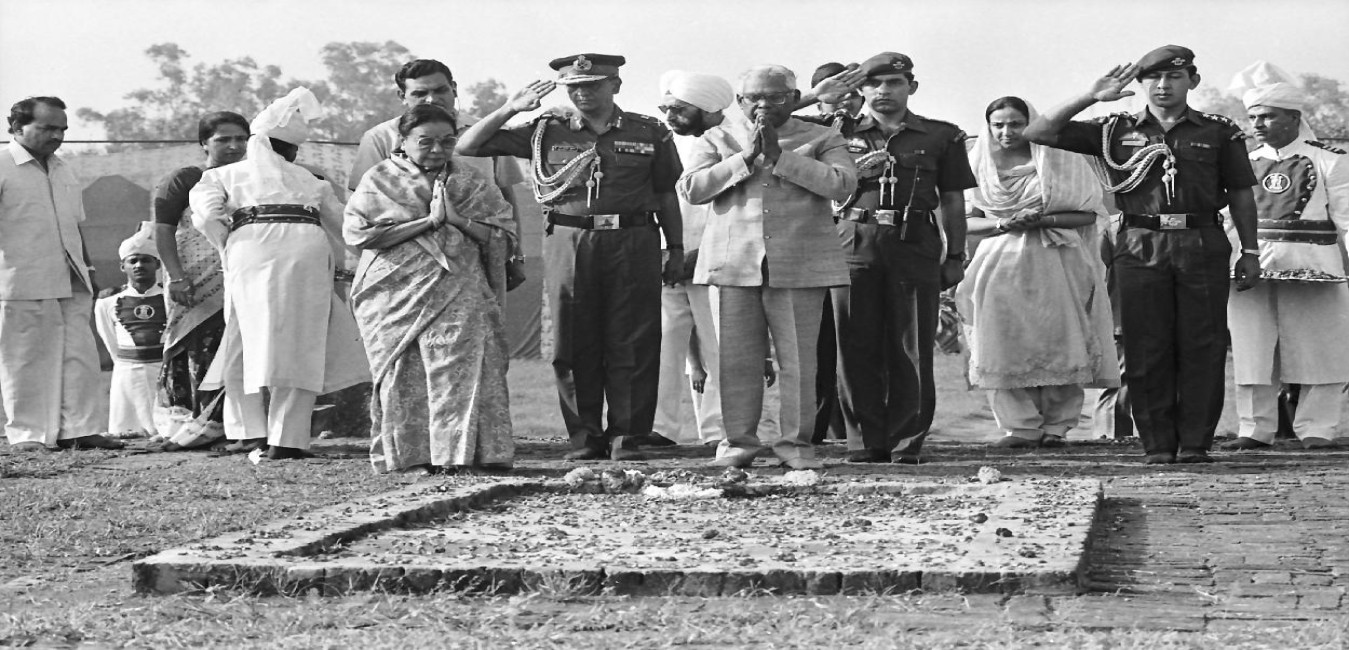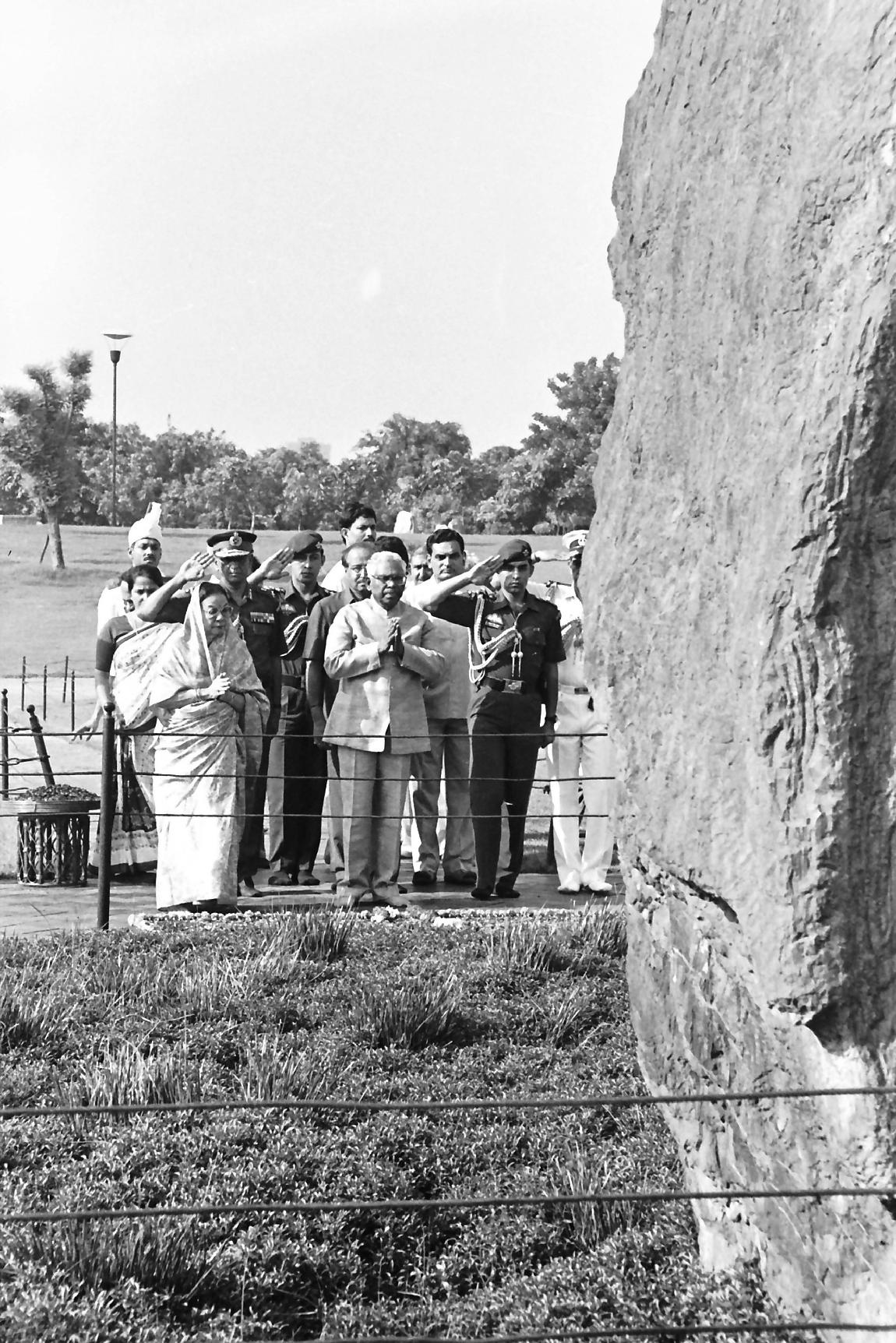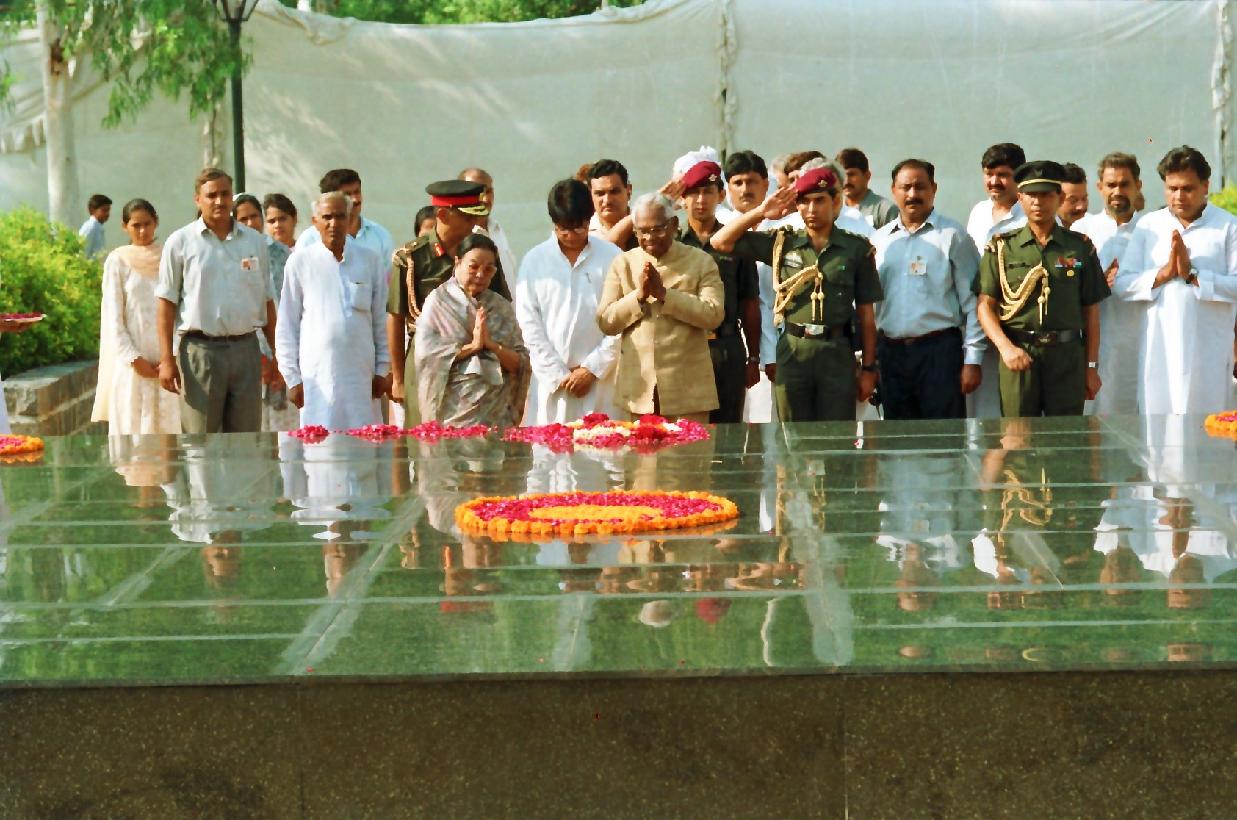 The President of India, Shri K R Narayanan paying tributes at the Samadhi of the Former Prime Minister of India, Late Smt Indira Gandhi at Shakti Sthal in New Delhi on July 26, 1997