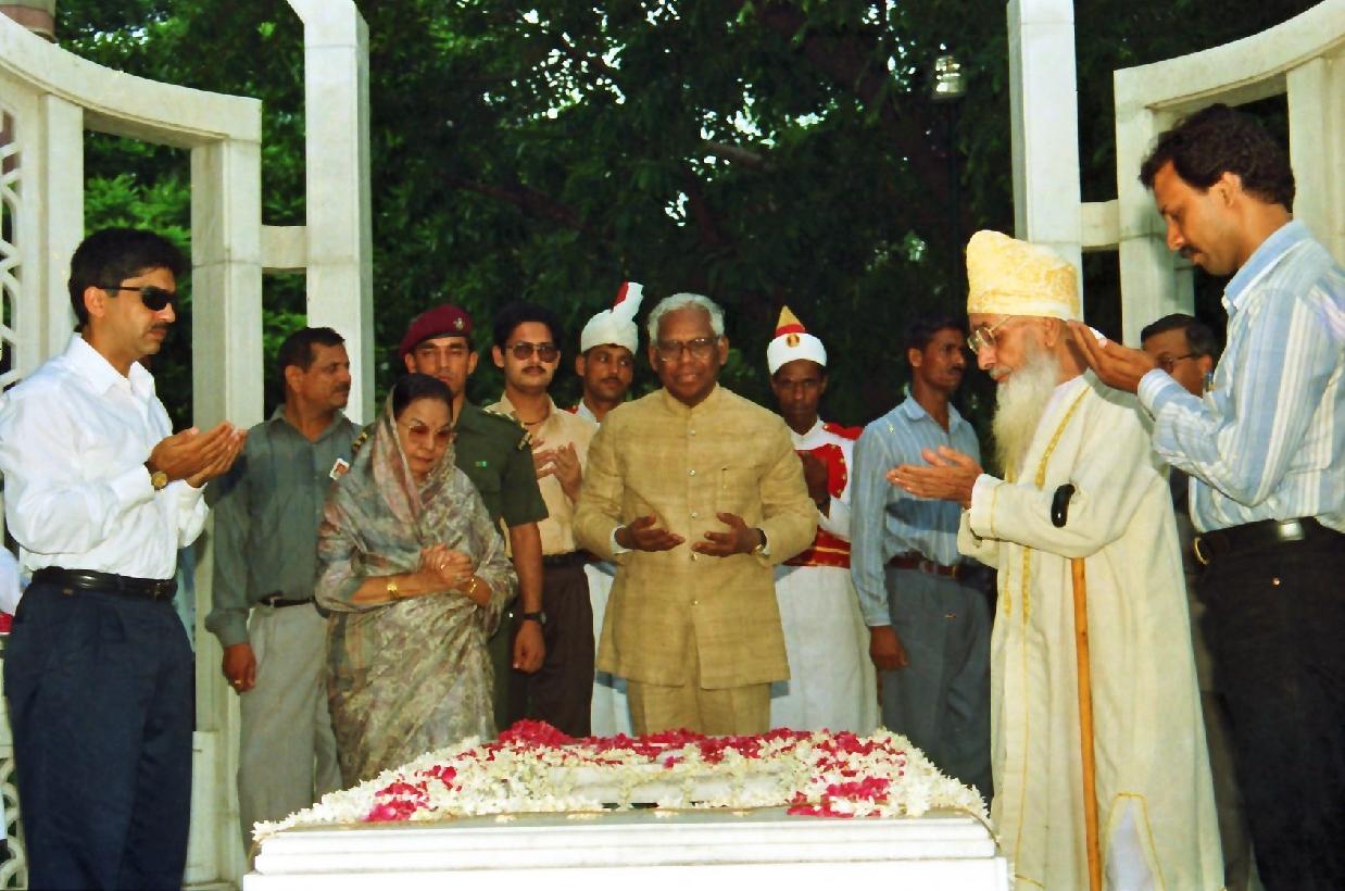 The President of India, Shri K R Narayanan paying tributes at the Samadhi of the Former Prime Minister of India, Late Smt Indira Gandhi at Shakti Sthal in New Delhi on July 26, 1997