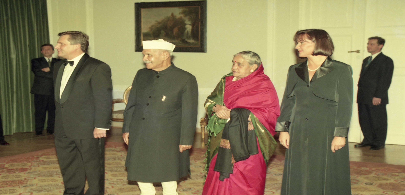 The President of India, Dr. Shankar Dayal Sharma at a Tete-a-tete meeting with the Polish President, Mr. Aleksander Kwa?niewski, at Presidential Palace, Warsaw, in Poland on October 07, 1996.