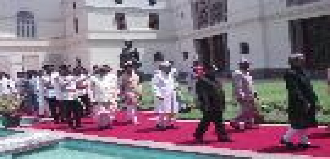 The President of India, Shri Shankar Dayal Sharma in a procession to address the both Houses of Parliament, at Parliament House in New Delhi on May 24, 1996.
