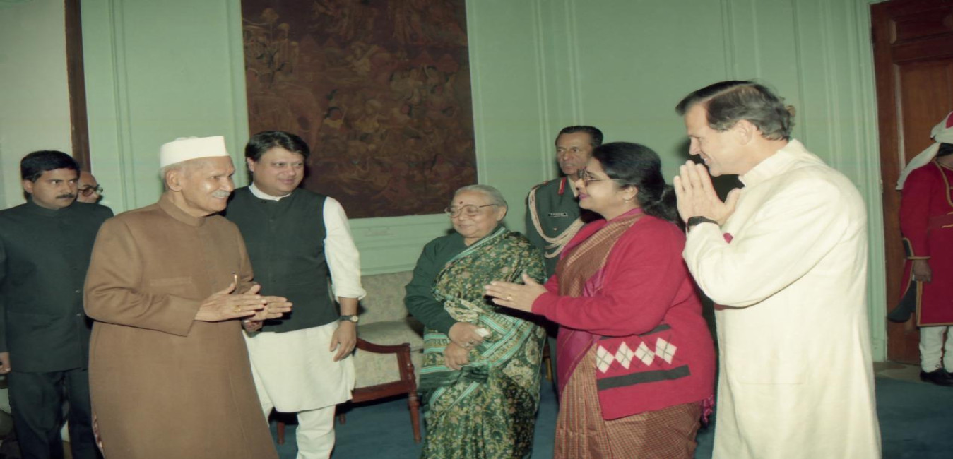 The President of India, Dr. Shankar Dayal Sharma being presented UNICEF's Report on the State of the World's Children on the occasion of 50th anniversary of UNICEF, at Rashtrapati Bhavan in New Delhi on December 11, 1995.