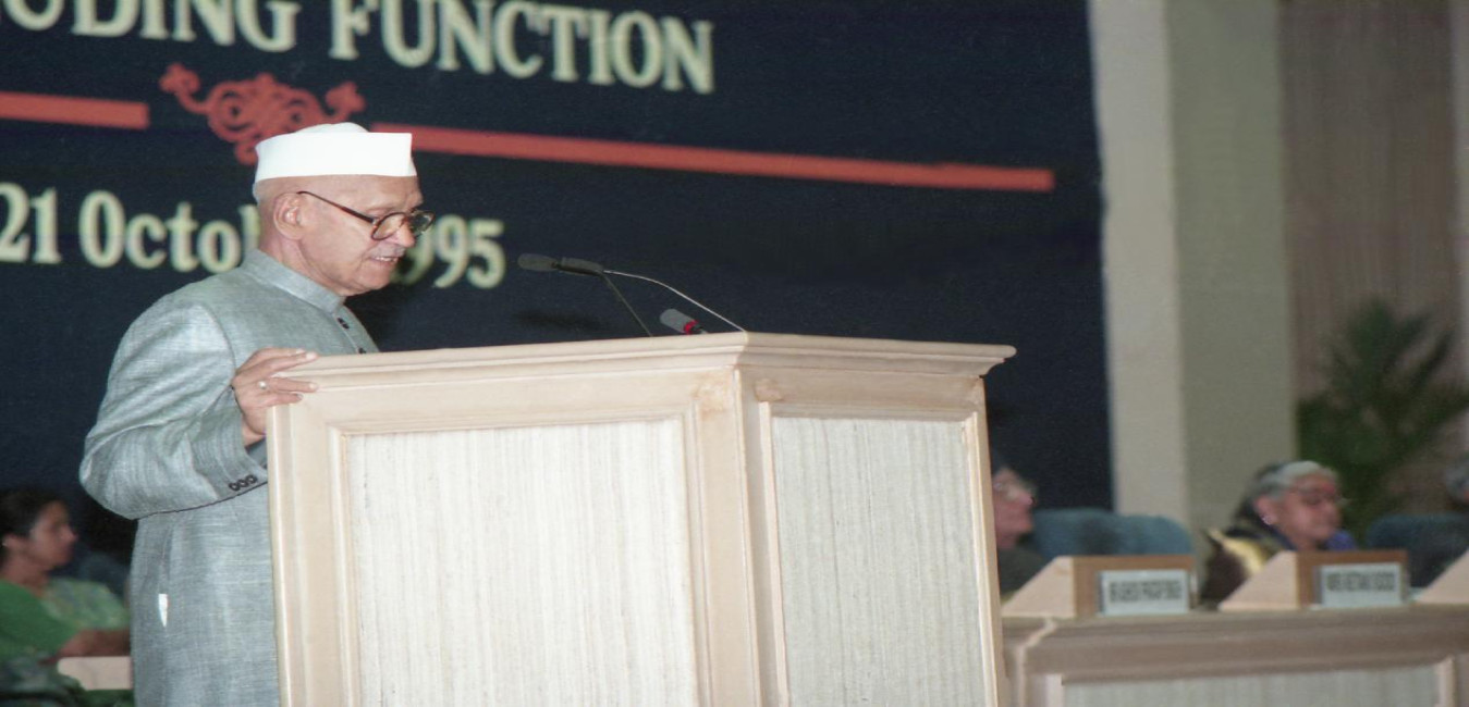 The President of India, Dr. Shankar Dayal Sharma presiding over the concluding function of Golden Jubilee Celebrations of Mysore Hindi Prachar Parishad at Vigyan Bhavan in New Delhi on October 28, 1995.