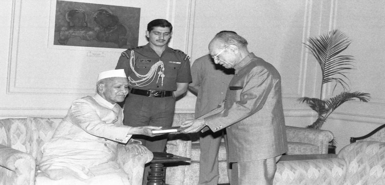 The President of India, Dr. Shankar Dayal Sharma meeting with Captain Sawant during a farewell call, at Rashtrapati Bhavan in New Delhi on August 14, 1995.