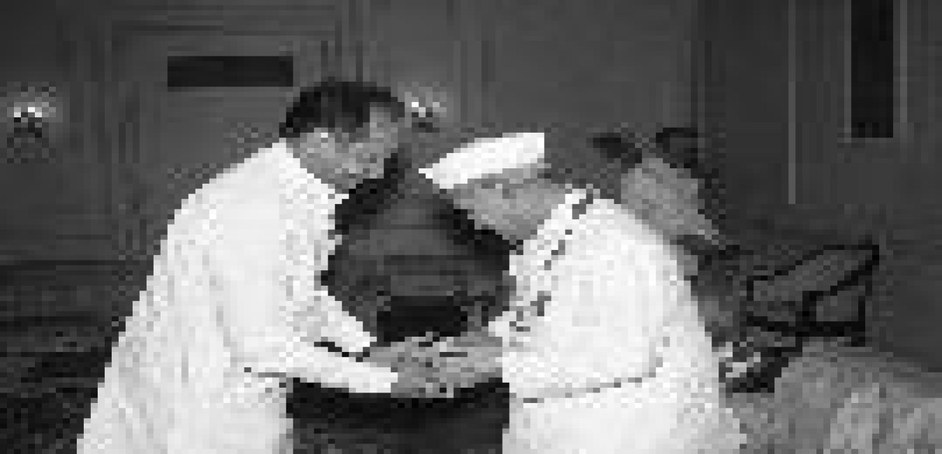 The President of India, Dr. Shankar Dayal Sharma receiving Holi Greetings from the Vice-President, Shri K.R. Narayanan, Rashtrapati Bhavan staff and their families at Rashtrapati Bhavan in New Delhi on March 17, 1995.
