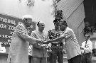 The President of India, Dr. Shankar Dayal Sharma presenting National Awards to Teachers at Vigyan Bhavan in New Delhi on September 05, 1994.