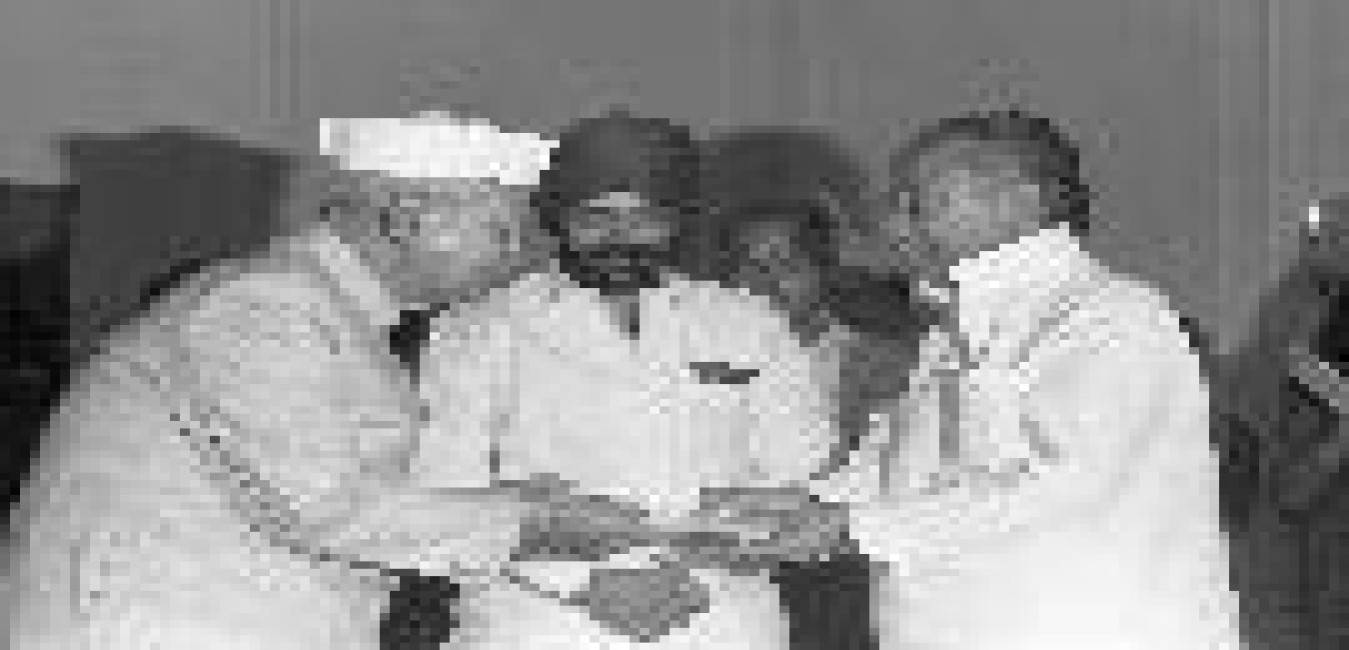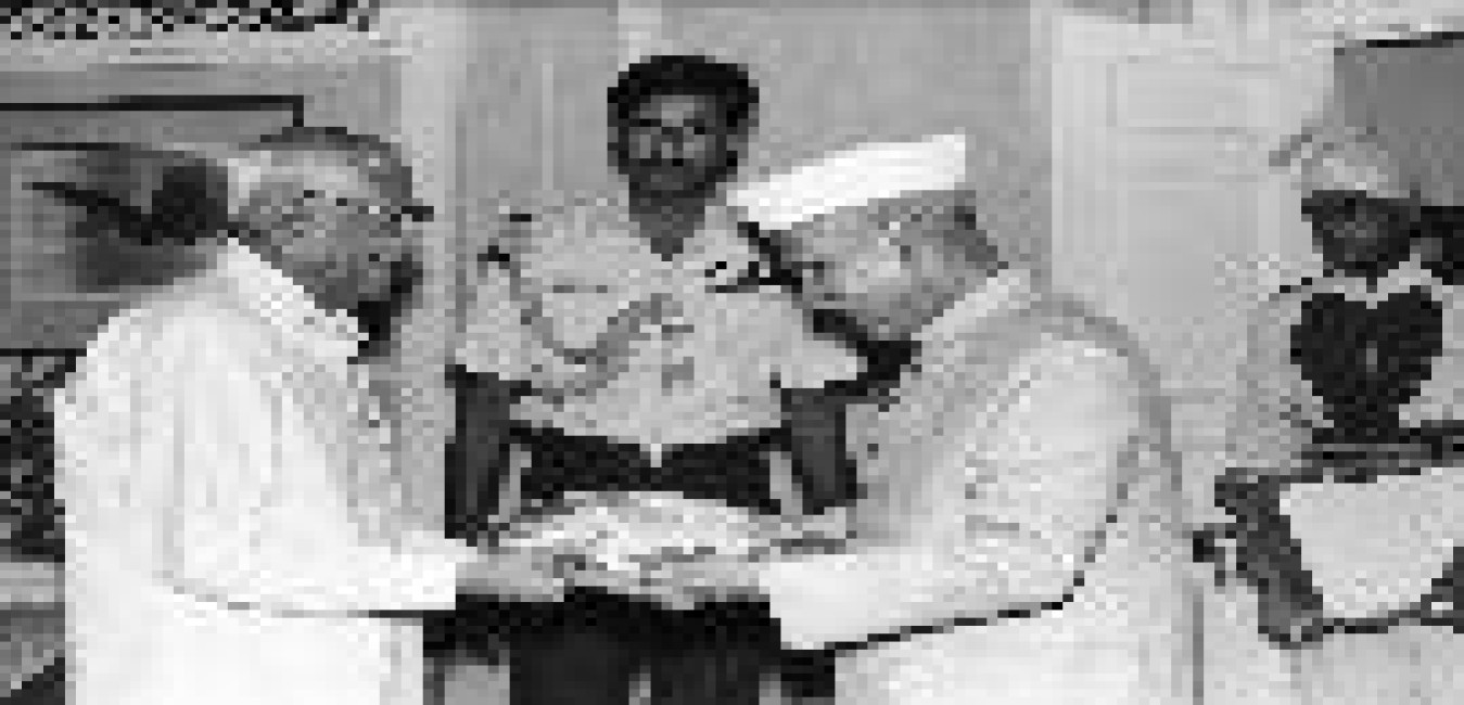 The President of India, Dr. Shankar Dayal Sharma presenting the Bharat Shiromani 1994 award to Shri Hiteswar Saikia, Chief Minister of Assam organised by Shiromani Institute at Rashtrapati Bhavan in New Delhi on July 15, 1994.