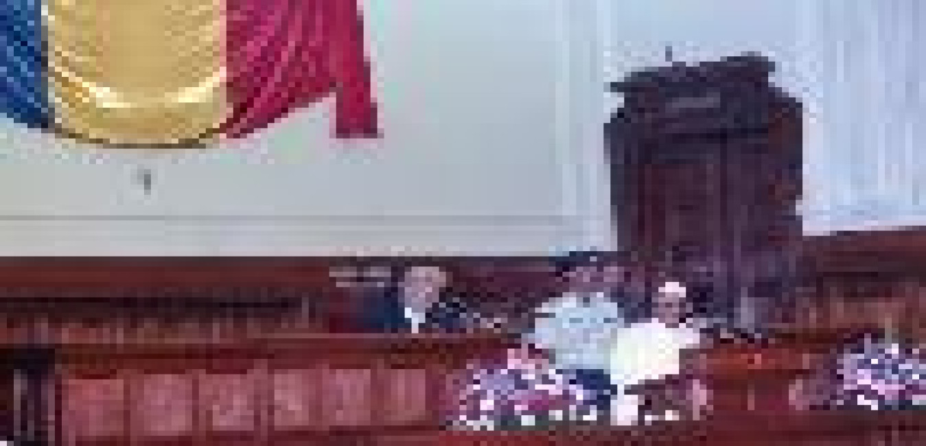 The President of India, Dr. Shankar Dayal Sharma addressing the Members of Parliament and signing the Parliament's Book of Honour, at Bucharest, in Romania on May 31, 1994.