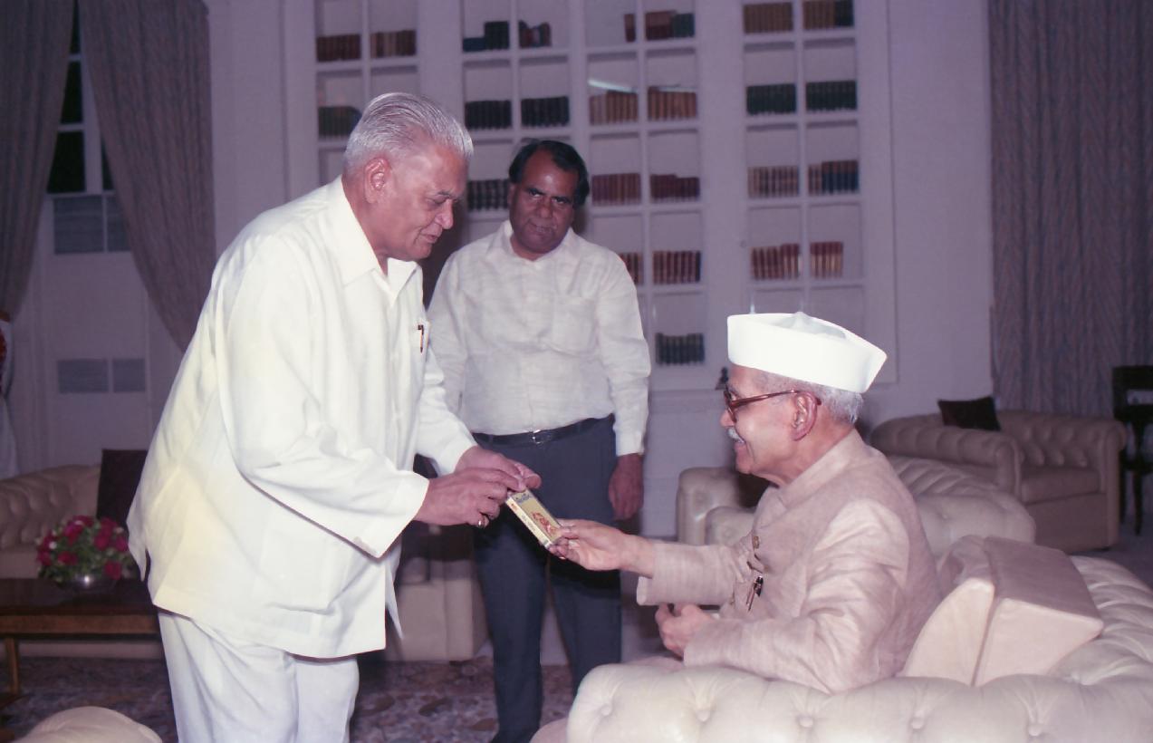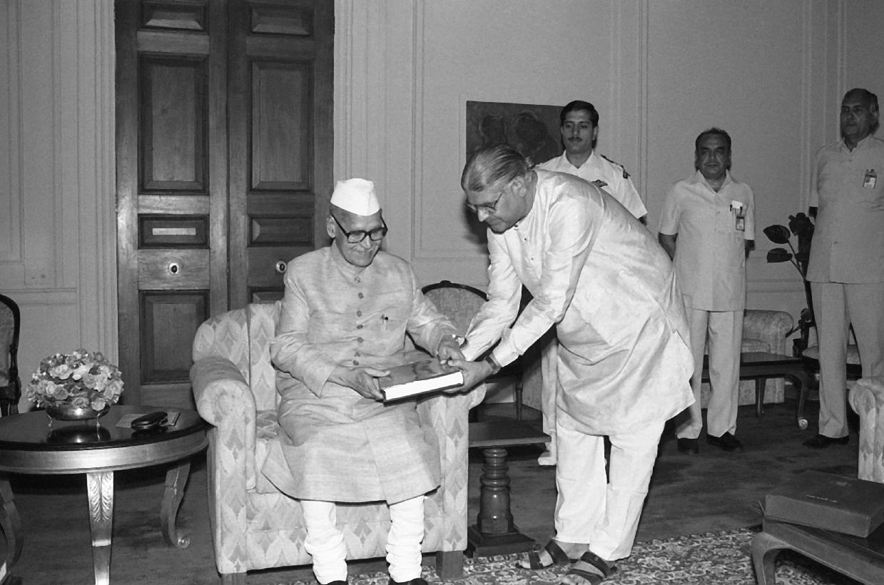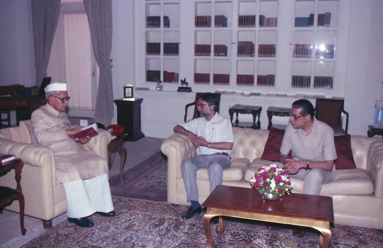 The President of India, Dr. Shankar Dayal Sharma receiving a copy of the book from Mr. Chopra from UBC Publisher at Rashtrapati Bhavan in New Delhi on May 23, 1994.