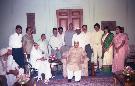 The President of India, Dr. Shankar Dayal Sharma meeting with Grammy Award Winners at Rashtrapati Bhavan in New Delhi on May 20, 1994.