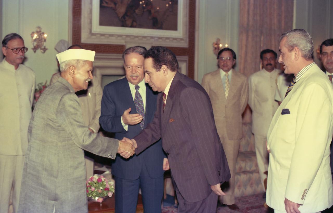 The Egyptian Parliamentary Delegation led by H.E. Dr. Ahmed Fathi Sorour, Speaker of the People's Assembly of Egypt calling on the President of India, Dr. Shankar Dayal Sharma at Rashtrapati Bhavan in New Delhi on May 14, 1994.