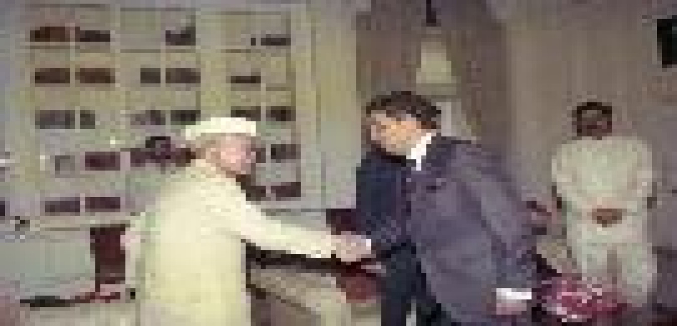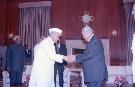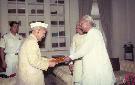 The President of India, Dr. Shankar Dayal Sharma meeting with H.E. Mr. Mohammad Said Al Sahaf, Foreign Minister of Iraq at Rashtrapati Bhavan in New Delhi on April 21, 1994.
