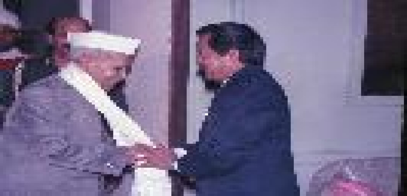 The President of India, Dr. Shankar Dayal Sharma meeting with Shri Nar Bahadur Bhandari, Chief Minister of Sikkim at Rashtrapati Bhavan in New Delhi on April 20, 1994.