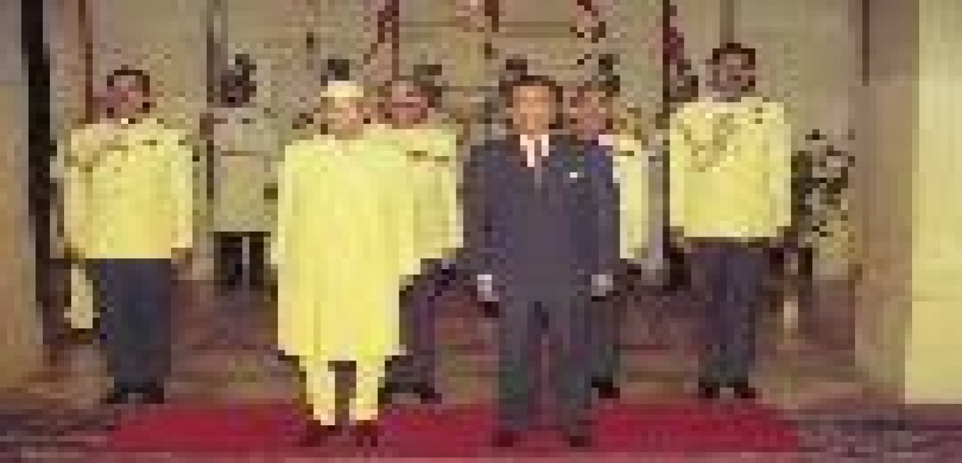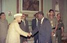 The Heads of State/Government attending the G-15 Summit calling on the President of India, Dr. Shankar Dayal Sharma, at Rashtrapati Bhavan in New Delhi on March 28, 1994.