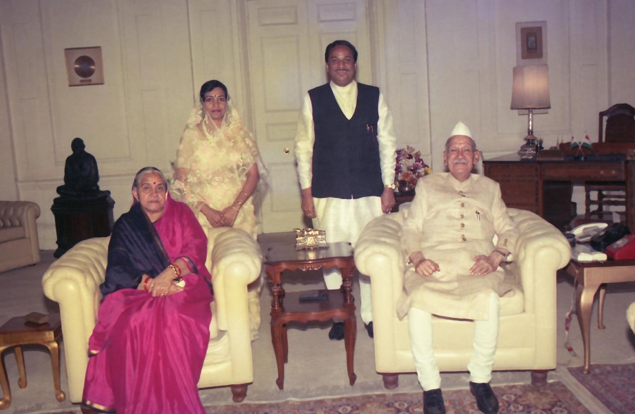 The President of India, Dr. Shankar Dayal Sharma meeting with Smt. & Shri Kanti Lal Bhoria, Tribal Minister of Madhaya Pradesh at Rashtrapati Bhavan in New Delhi on March 29, 1994.