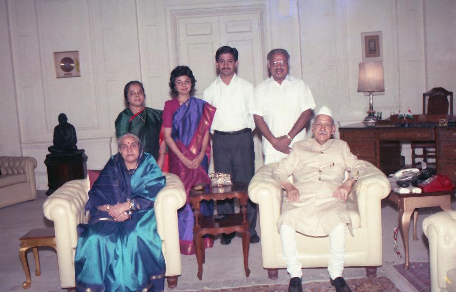 The President of India, Dr. Shankar Dayal Sharma meeting with Shri P.J. Kurian with family members, at Rashtrapati Bhavan in New Delhi on April 02, 1994.