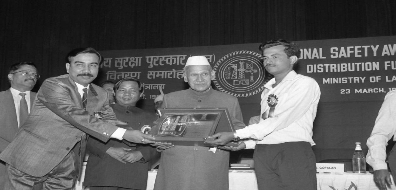 The President of India, Dr. Shankar Dayal Sharma presenting National Safety Awards at FICCI auditorium, in New Delhi on March 23, 1994.