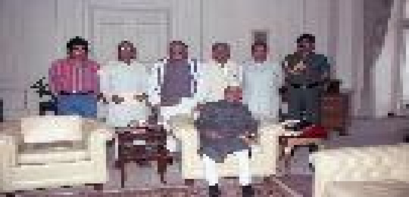 The President of India, Dr. Shankar Dayal Sharma meeting with Smt. Satya Behan, Ex-MP with others at Rashtrapati Bhavan in New Delhi on March 23, 1994.