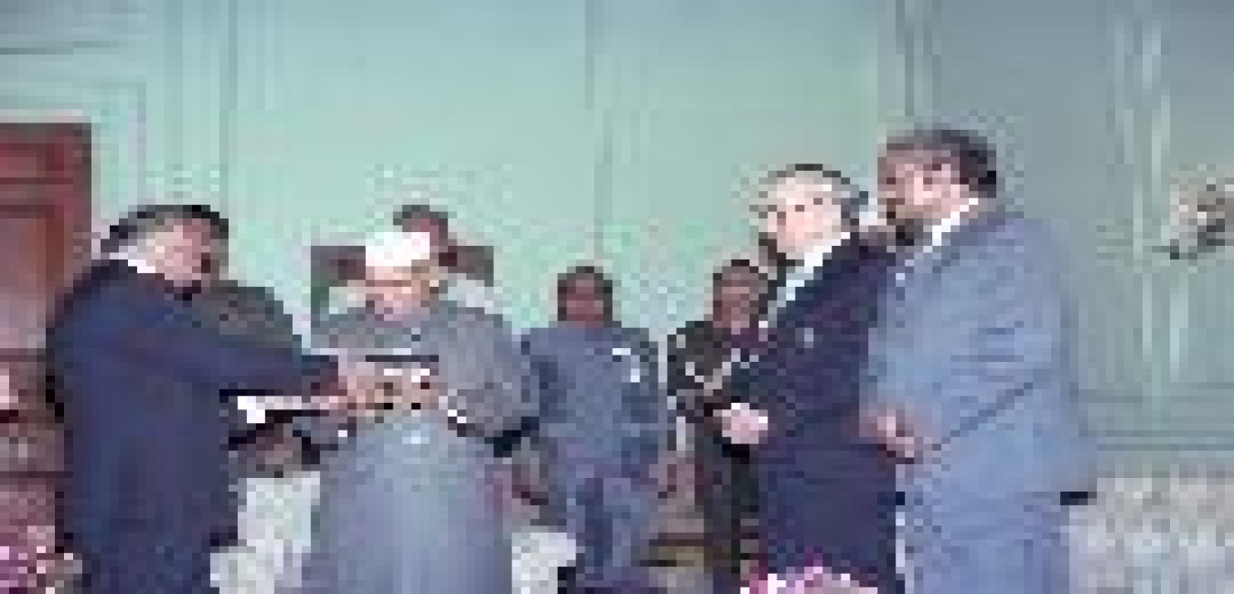 The President of India, Dr. Shankar Dayal Sharma receiving a copy of the book "Paigambar Mohammad Quran Aur Hadees-Islami Darshan" of Dr. B.N. Pande at Rashtrapati Bhavan in New Delhi on March 25, 1994.