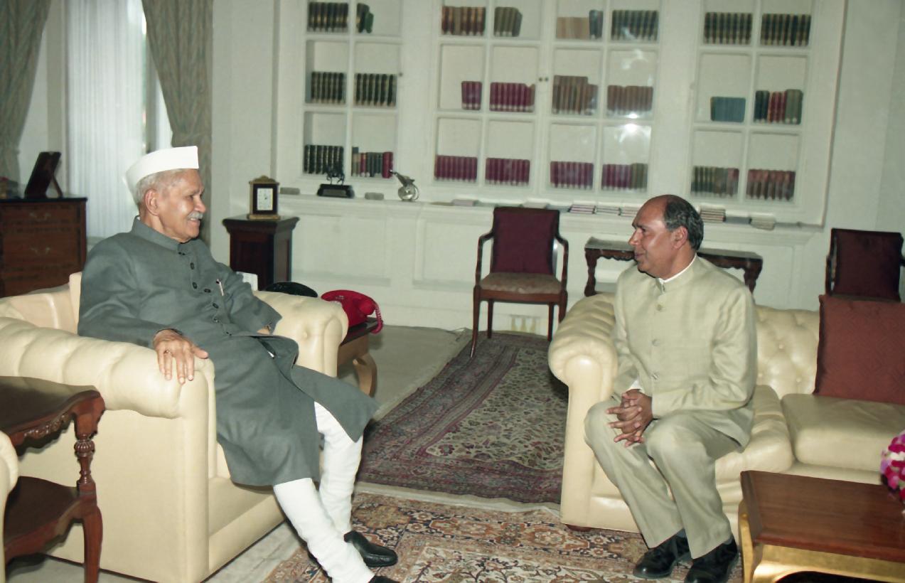 The President of India, Dr. Shankar Dayal Sharma meeting with Shri Uday Singh, Ambassador designate to Suriname at Rashtrapati Bhavan in New Delhi on March 23, 1994.