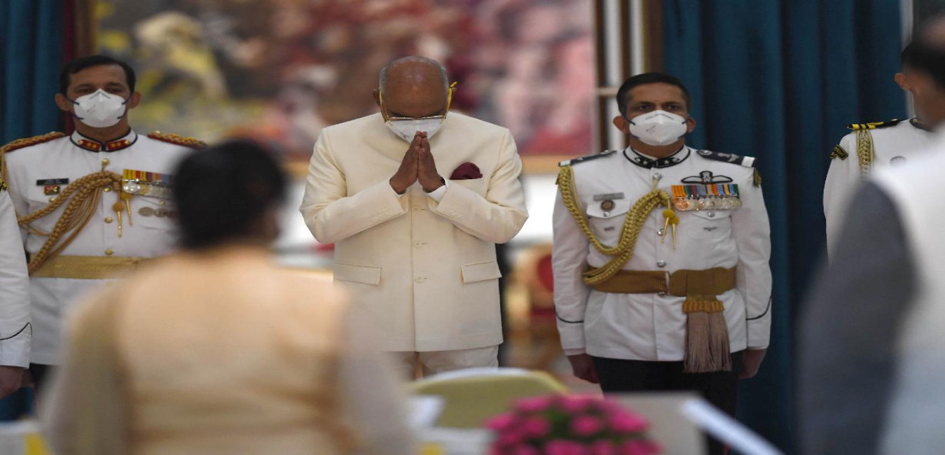 The President of India, Shri Ram Nath Kovind administering the oath of office to Shri Girish Chandra Murmu as the Comptroller and Auditor-General of India, at Rashtrapati Bhavan on August 08, 2020.