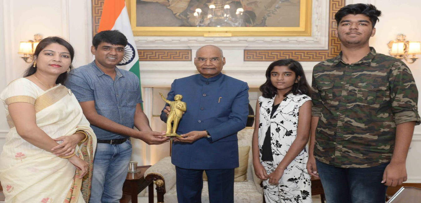 Shri Jitendra Kumar Jatav along with his family meeting with the President of India, Shri Ram Nath Kovind, at Rashtrapati Bhavan on August 22, 2019.