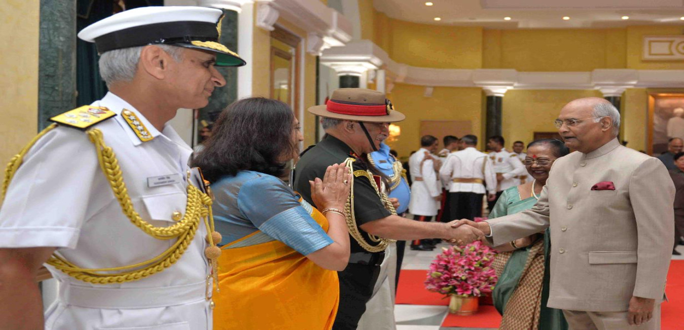 Lt. Gen. Devraj Anbu, ADC, Vice Chief of Army Staff along with his wife Smt. Gowri Anbu meeting with the President of India, Shri Ram Nath Kovind, at Rashtrapati Bhavan on August 14, 2019.