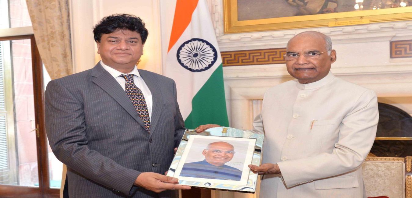 The Ambassador-designate of India to Jordan, Shri Anwar Haleem meeting with the President of India, Shri Ram Nath Kovind, at Rashtrapati Bhavan on June 22, 2019.