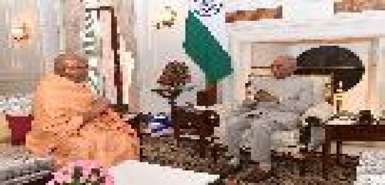 Swami Avdheshanand Giri Ji Maharaj, Acharya Mahamandaleshwar of the Juna Akhara meeting with the President of India, Shri Ram Nath Kovind, at Rashtrapati Bhavan on June 03, 2019.