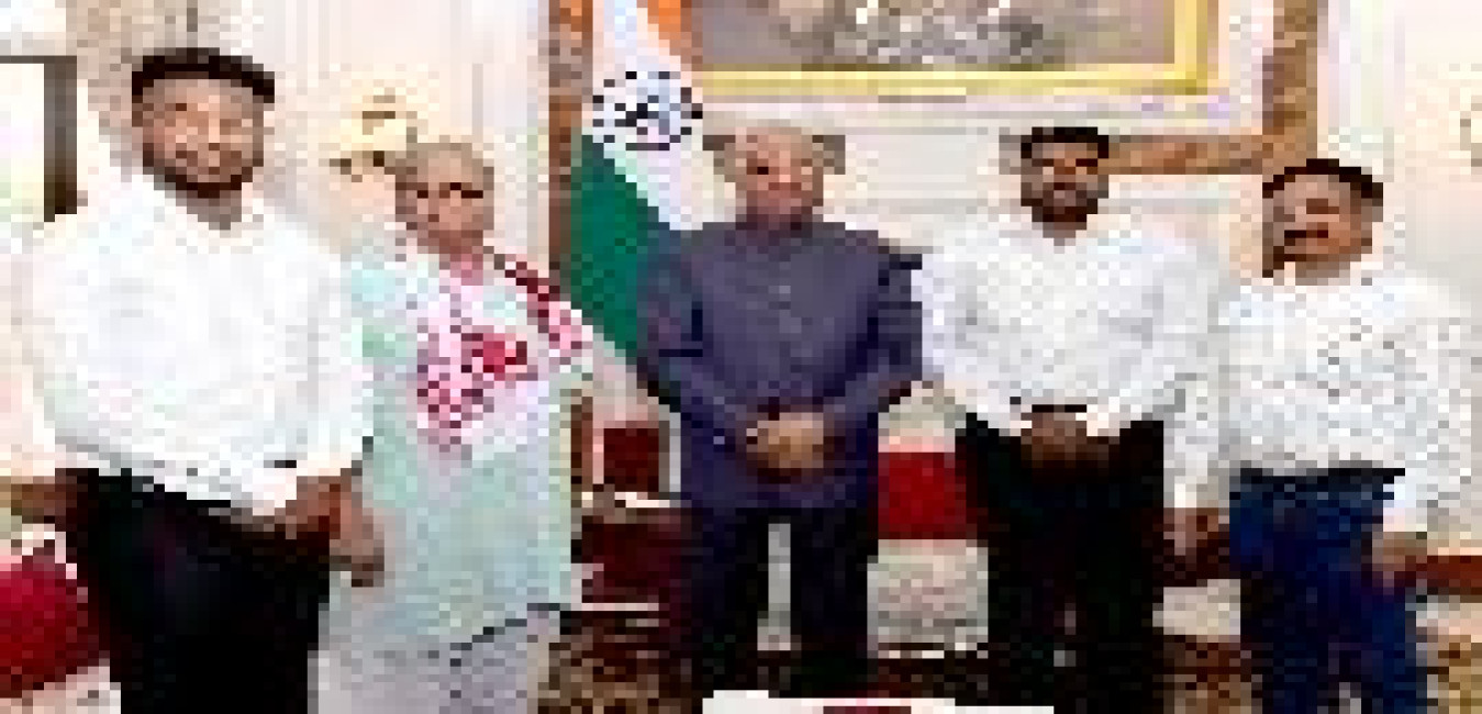Shri Mukesh Tripathi, Vice Chairman Surya Foundation New Delhi with others meeting with the President of India, Shri Ram Nath Kovind, at Rashtrapati Bhavan on May 10, 2019.