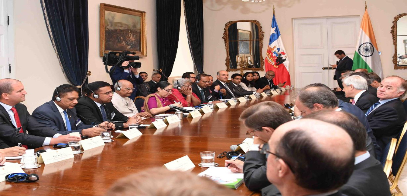 The President of India, Shri Ram Nath Kovind addresses the India-Chile Business roundtable, at Santiago, in the Republic of Chile on April 01, 2019.