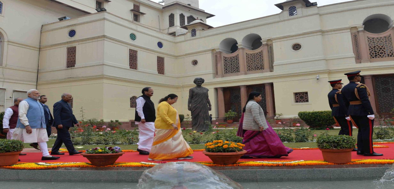 The President of India, Shri Ram Nath Kovind in a Ceremonial Procession towards the Central Hall of Parliament to address the Joint Sitting of Two Houses of Parliament, in New Delhi on January 31, 2019.