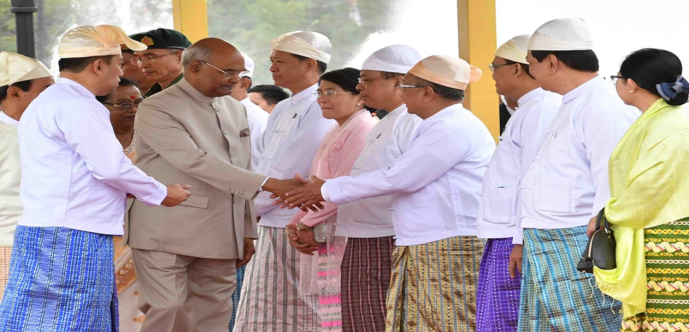 The President of India, Shri Ram Nath Kovind and the First Lady, Smt. Savita Kovind being received on their arrival, at Nay Pyi Taw International airport, in Myanmar on December 10, 2018.