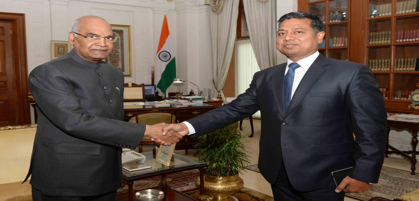 The Ambassador of India to Azerbaijan, Shri Sanjay Rana calling on the President of India, Shri Ram Nath Kovind, at Rashtrapati Bhavan on July 03, 2018.