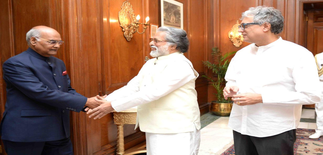 Shri B.S. Banerjee alongwith his son Shri Saurav Banerjee meeting with the President of India, Shri Ram Nath Kovind, at Rashtrapati Bhavan on May 01, 2018.