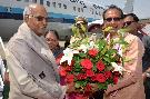 The President of India, Shri Ram Nath Kovind being received by the Governor, Madhya Pradesh, Smt. Anandiben Patel and the Chief Minister, Madhya Pradesh, Shri Shivraj Singh Chouhan, on his arrival, at Bhopal airport on April 28, 2018.