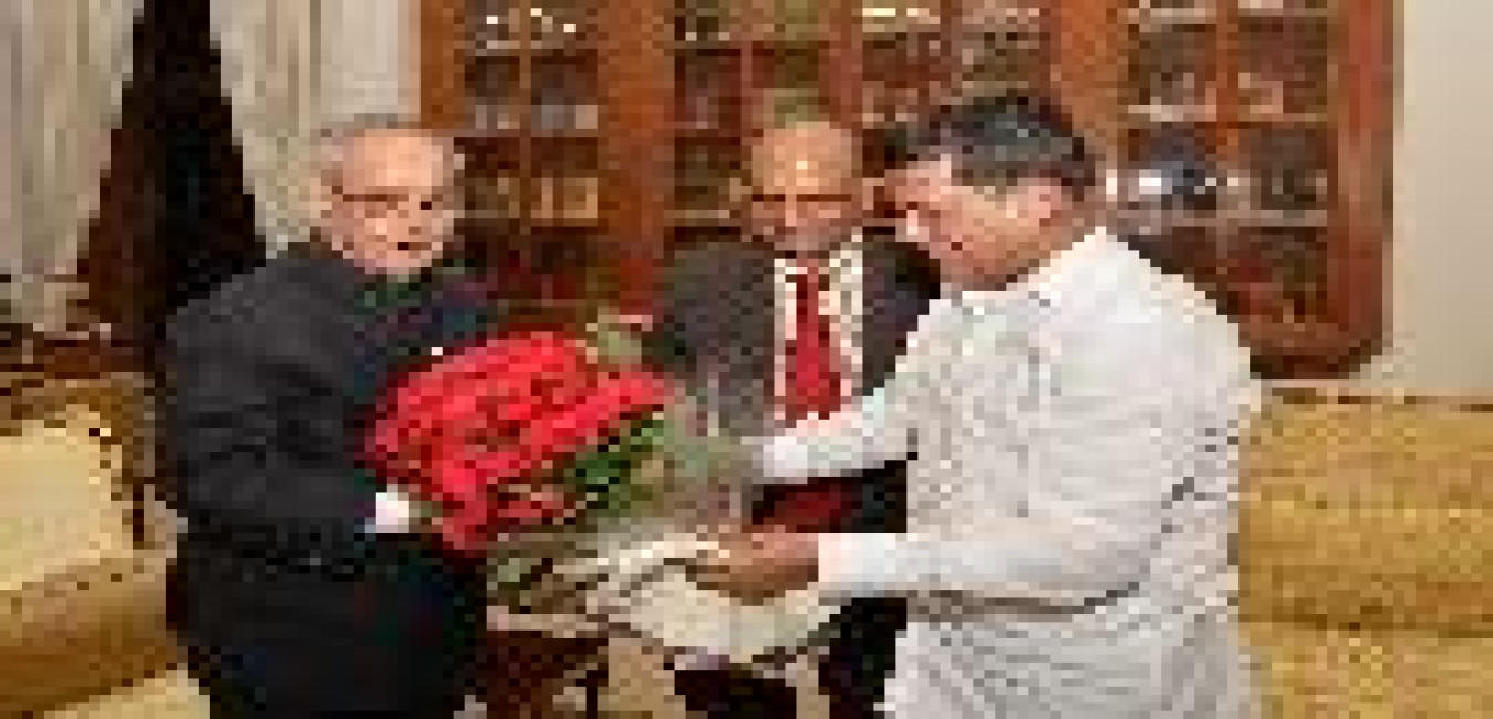 The President of India, Shri Pranab Mukherjee meeting with Dr. (Col.) Dhani Ram Shandil, Minister of Social Justice & Empowerment and Sainik Welfare, Govt. of Himachal Pradesh, at Rashtrapati Bhavan, in New Delhi on September 21, 2015.