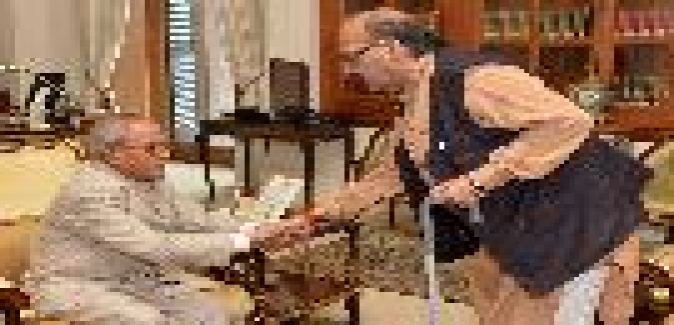 The President of India, Shri Pranab Mukherjee meeting with Dr. Bhakta Charan Das, former Union Minister, at Rashtrapati Bhavan, in New Delhi on August 24, 2015.
