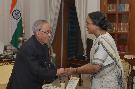 The President of India, Shri Pranab Mukherjee meeting with the former Speaker, Lok Sabha, Smt. Meira Kumar, at Rashtrapati Bhavan, in New Delhi on August 20, 2015.