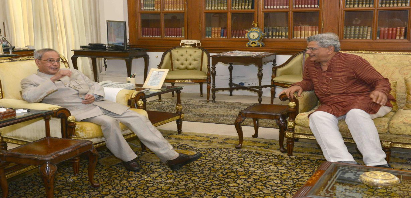 The President of India, Shri Pranab Mukherjee meeting with Shri Sitaram Yechury, General Secretary of the Communist Party of India (Marxist), at Rashtrapati Bhavan, in New Delhi on July 22, 2015.