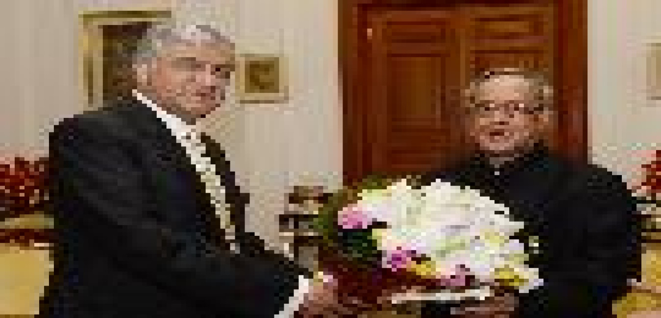 The President of India, Shri Pranab Mukherjee meeting with the Governor of Meghalaya, Dr K K Paul on the occasion of Diwali at Rashtrapati Bhavan in New Delhi on Oct 23, 2014
