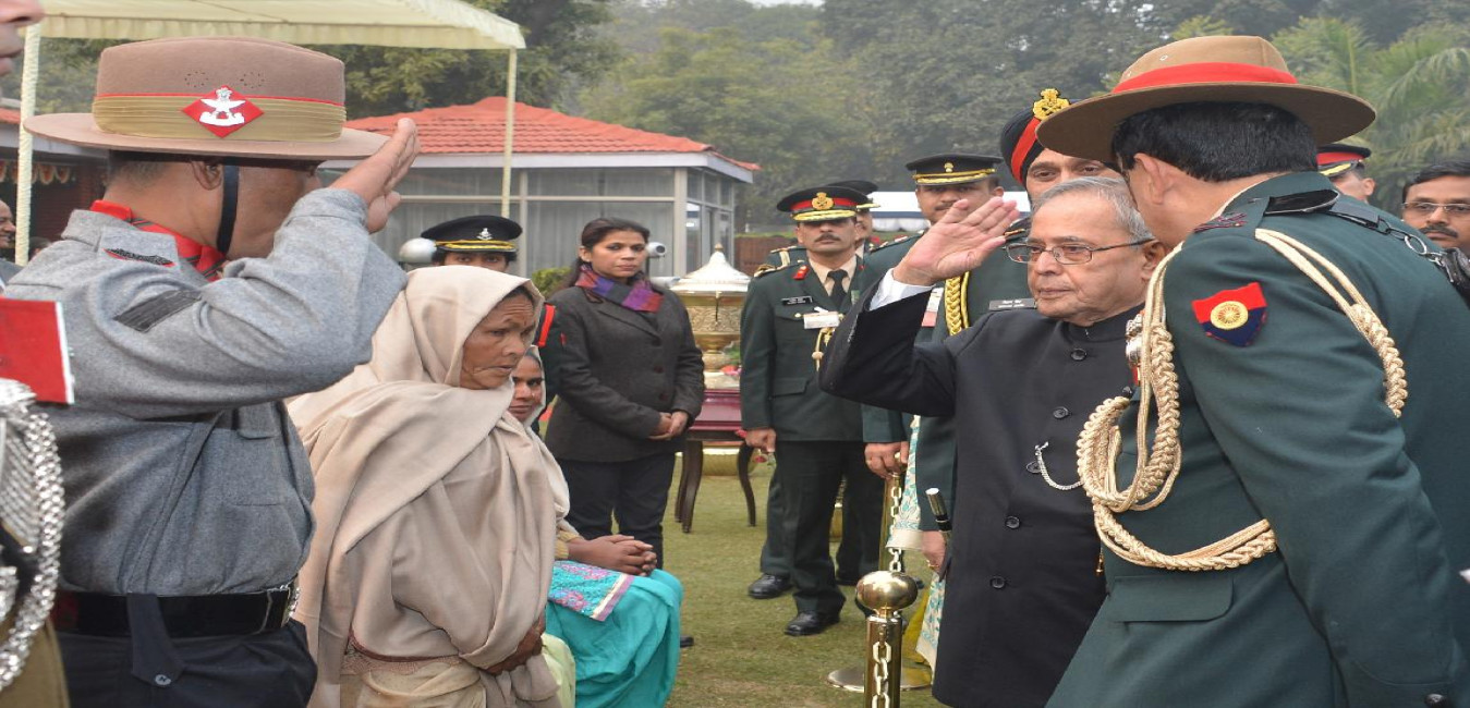 The President of India, Shri Pranab Mukherjee at the Reception Hosted by the Chief of Army Staff of the Indian Army, General Bikram Singh on the occasion of Army Day at Army House, 4, Rajaji Marg in New Delhi on Jan 15, 2014