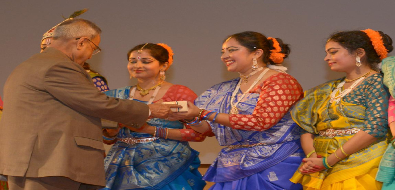 The President of India, Shri Pranab Mukherjee witnessing the Performance Kabiguru Rabindranath Tagore s Bhanu Singher Padabali at Rashtrapati Bhavan Auditorium in New Delhi on Sep 22, 2013