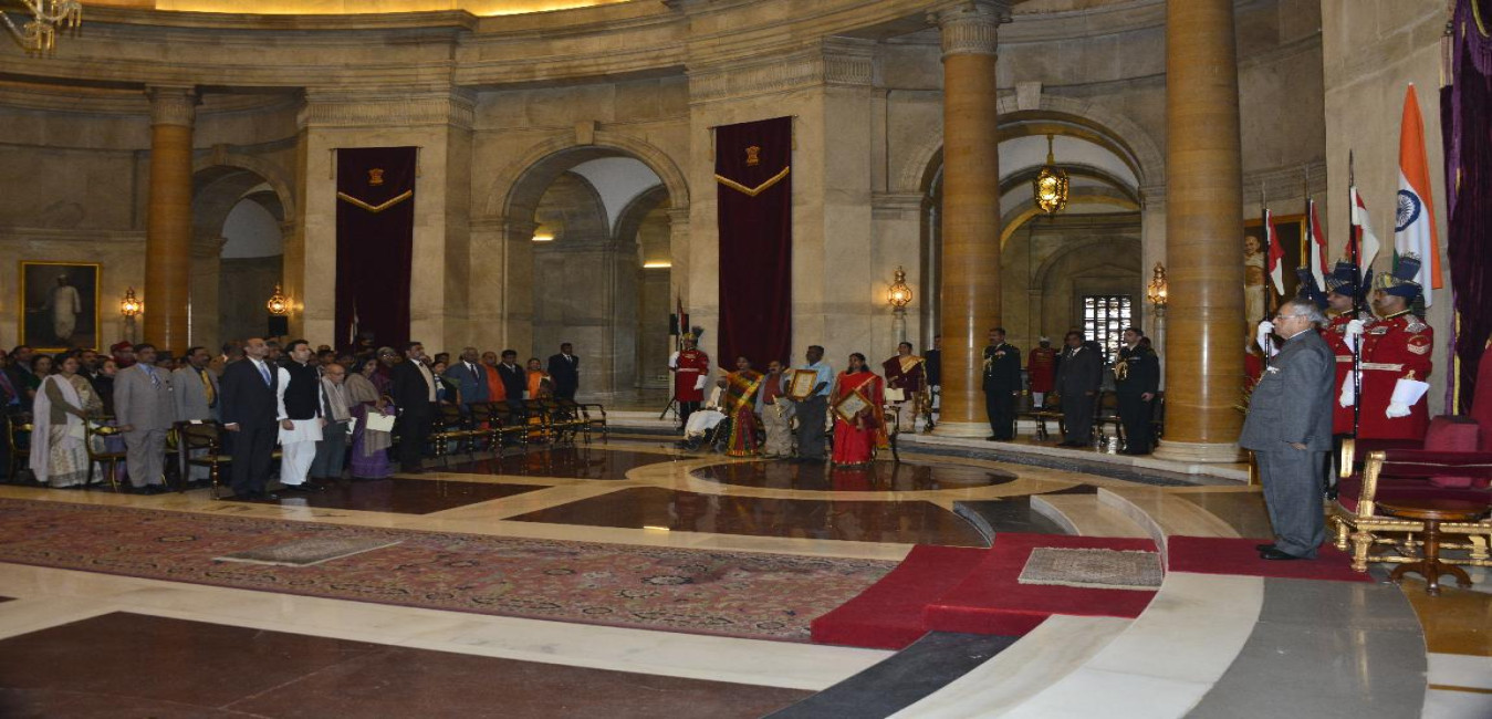 The President of India, Shri Pranab Mukherjee Presenting the Presidential Awards for Classical Tamil at Darbar Hall of Rashtrapati Bhavan in Delhi on Dec 21, 2012